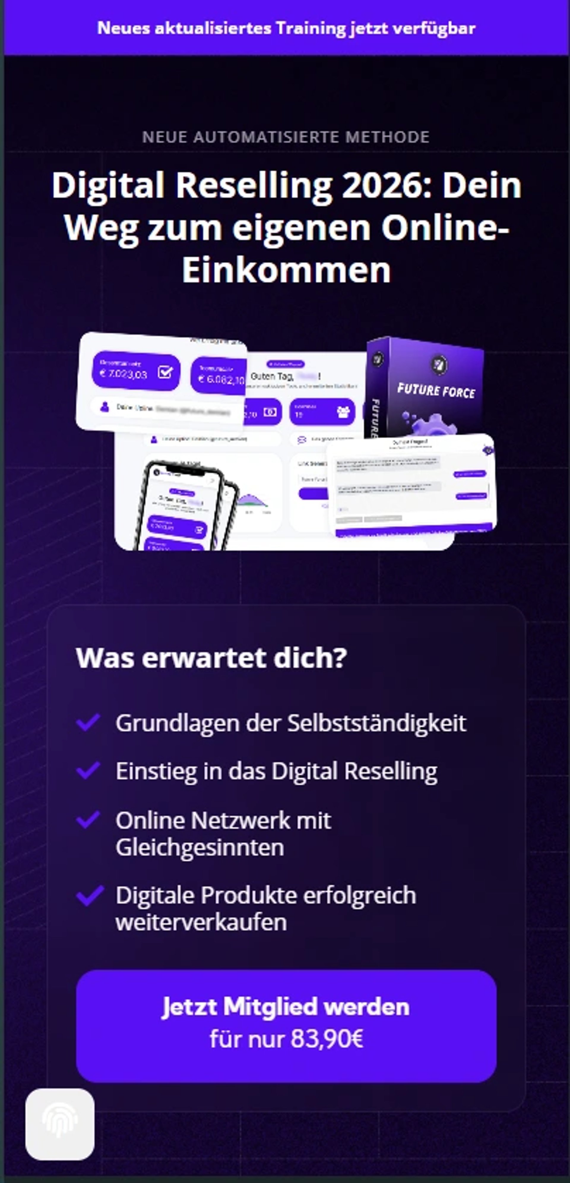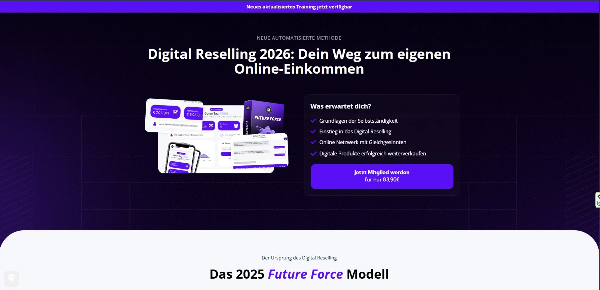 Suchen Sie nach einer praxiserprobten Strategie, um sich mit Digital Reselling ein zweites Standbein aufzubauen und moderne Vertriebswege ohne eigenes Lager oder Vorwissen zu nutzen? In unseren Future Force FAQs beantworten wir die wichtigsten Fragen zu unserem Trainingsprogramm für das Modell 2026. Erfahren Sie alles über die Funktionsweise unserer digitalen Systeme, die Unterstützung durch unser Experten-Team und warum Teilnehmer ihre positiven Future Force Erfahrungen in der Community teilen. Unser Ziel ist es, Ihnen fundiertes Wissen zu vermitteln, das Ihre berufliche Entwicklung fördert und den Einstieg in den digitalen Handel erleichtert.